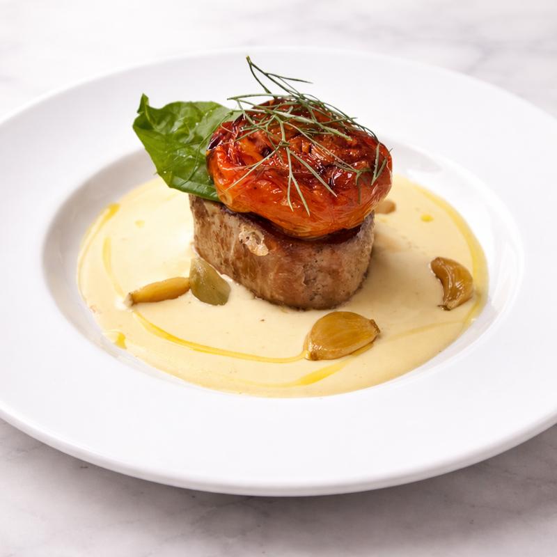 Sauce Bercy, confit Roma tomatoes, basil, roasted garlic